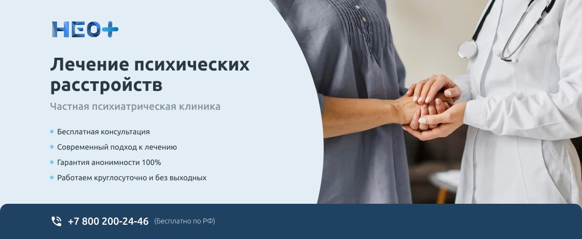 Записаться на прием к врачу-психиатру можно на официальном сайте клиники «НеоПлюс» в Боровске или по телефону ☎️ +7 (800) 200-24-46. Звоните нам, не запускайте проблему. Мы знаем, как вернуть здоровье и покой в Вашу семью!